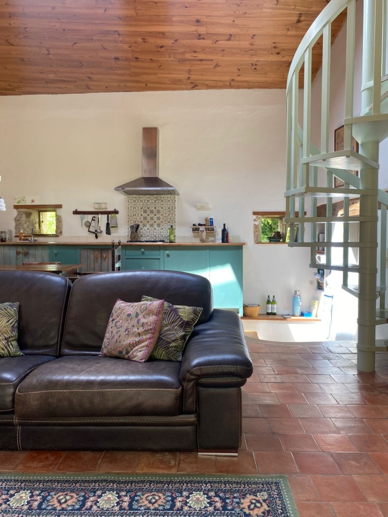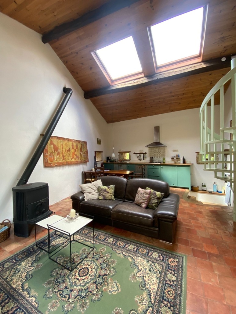 Het huis heeft een grote woonkamer met open keuken, twee slaapkamers en een badkamer met douche. De woonkamer heeft, naast een houtkachel ook vloerverwarming, wat prettig is in voor- en najaar.