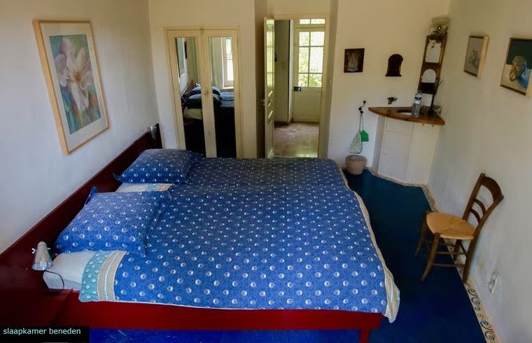 - Slaapkamer met één tweepersoonsbed en één eenpersoonsbed.